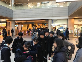 2年生の校外学習は特に大きな事故もなく、無事に終わりました。ほとんどの班が決められた時間内に帰って来ることができていました。優秀ですね!小さなアクシデントはいくつかの班にあったようですが…。今回のうまくいかなかったことは、3年生の修学旅行での班行動に活かしていきましょう。寒い中、1日中外を歩き回って疲れていると思いますので、今日は温かくしてゆっくり休みましょう。お疲れさまでした。