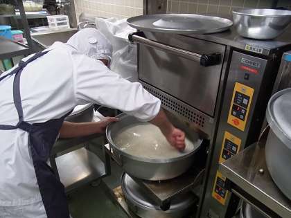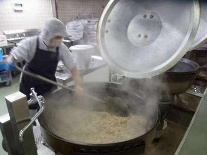 (中央)炊飯を開始する前に異物がないか最終確認をしています。