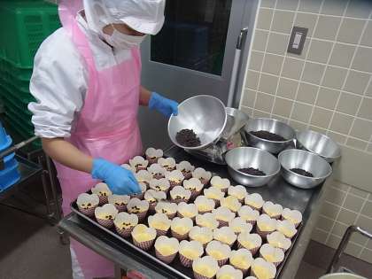 (右)今日はバレンタインなのでチョコの入ったマフィンを出すことにしました。