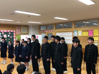3年生代表からの歓迎の言葉、歓迎の歌です。