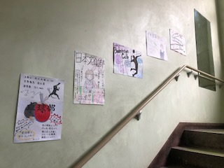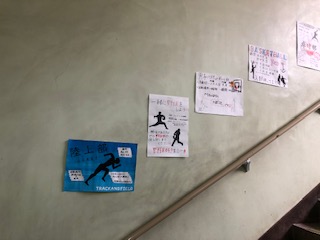 今日は、勧誘ポスターを一年生が使う階段に掲示しました。