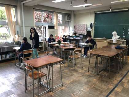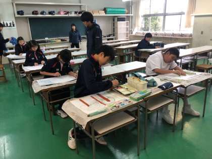 生憎の雨模様になり、本日I組が予定していた写生会は、次大夫堀公園から学校に変更して実施しています。