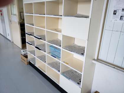 砧中学校で毎朝、各クラスに配布される新聞二紙。