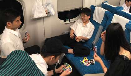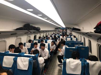 車内は、クラスメイトで話をしたり、ゲームをしたり。