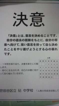 今日から3月。「人格の完成を目指して」のテーマは『決意』です。