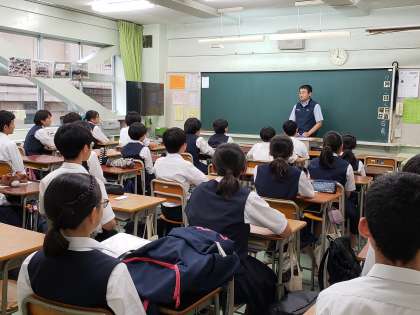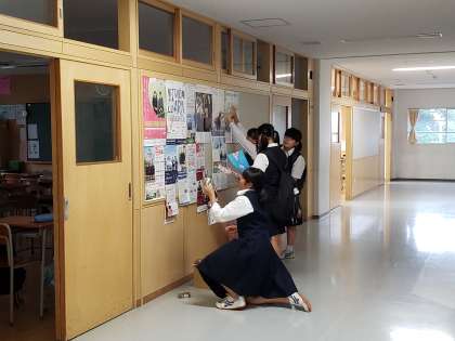 (下)3年生の教室前で進路ポスター掲示のお手伝い。