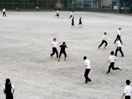 昼休み、校庭でのサッカー。