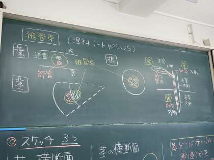 トウモロコシの維管束を顕微鏡で観察。