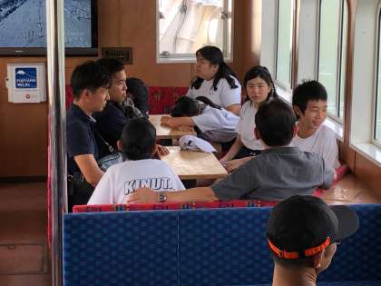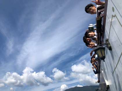 ロープウェイで天上山から降りてきた後は、遊覧船で河口湖遊覧です。