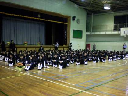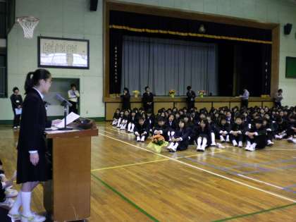 2校時、1年生と2・3年生が体育館に集まり、「対面式」を行いました。