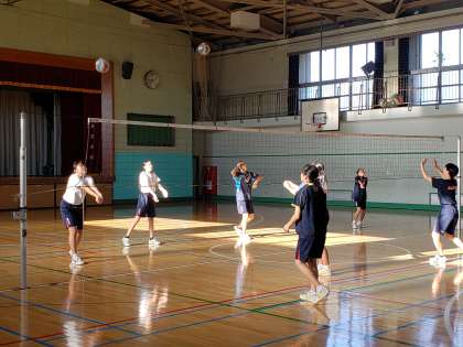 体育館ではバレー部が汗を流しています。