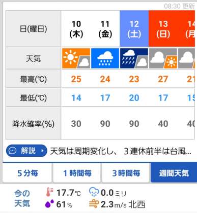 12日(土)のスケジュールを
