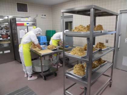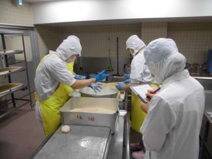 東京都の研修の一環で本校の給食室に学びに来ています。