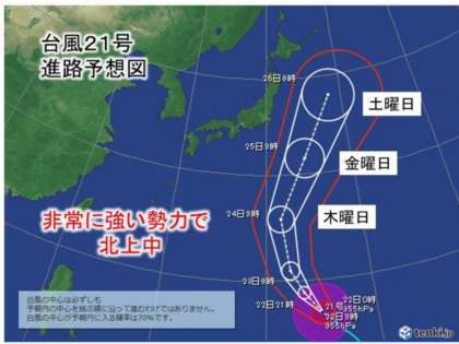 台風20号は昨夕21日(月)18時に温帯低気圧に変わりました。