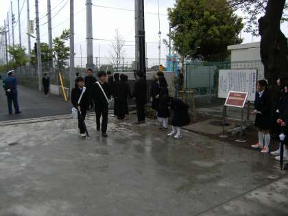 学校公開週間に合わせておこなう「あいさつ運動」のために、生活委員は朝早くから集まり、登校する生徒たちを明るい「おはよう」のあいさつで迎えました。