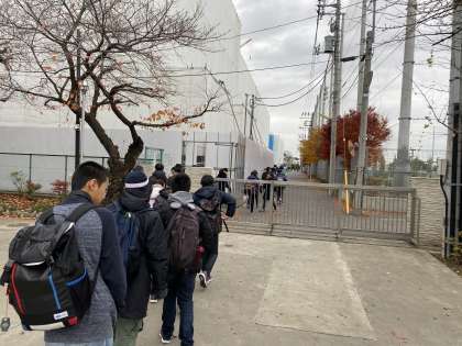 8時45分、寒空の下、元気に砧中を出発しました。