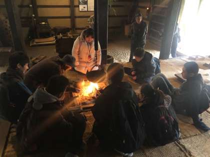3年生は囲炉裏を囲み、一息です!