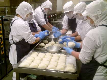 明治の給食はおにぎり、焼き魚、漬物とシンプルでした。