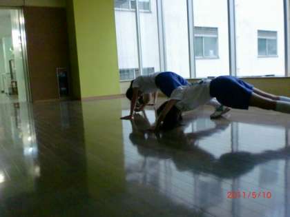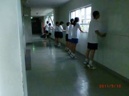 グラウンドが使用できなかった部活動は、室内でトレーニングに励んでいました。