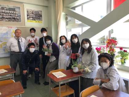 修了式ができずに2学年が終わってしまうことがとても心残りですが、2学年最後の通知表と修了証を渡したいと思います。下の時間帯で各教室に登校してください。その際は、教室に置いてある荷物を全て持ち帰ってください。1回で持ち帰れない人は、その前に登校日を設けますので、事前に荷物を持ち帰ってください。みんなの元気な顔に会いたいです。