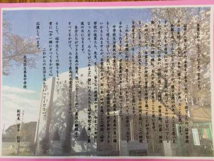 4月に転任された宮本先生から、卒業式に向けてのお祝いのメッセージが届きました。各教室に掲示しましたので、読んでくださいね。