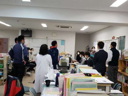 (※ 写真下段は1学年中心の打ち合わせ風景)