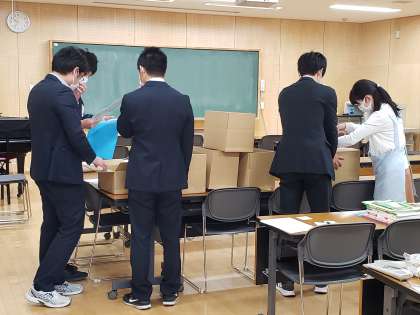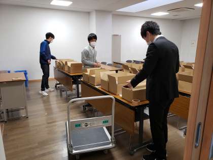 教科書の自宅配送を希望されたご家庭に、本日午前中に梱包を完了し、午後には配送業者へお渡しする予定です。