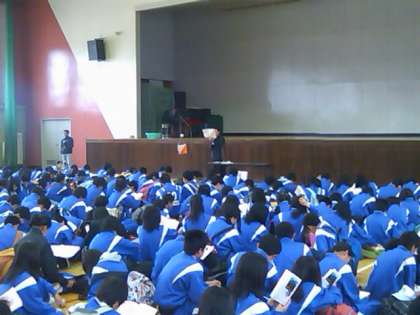 いま緑の休暇村体育館で、オリエンテーリングの説明を聞いています。