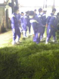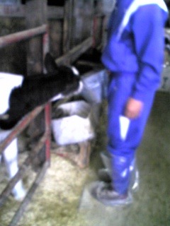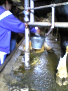牛の乳搾り、子牛への乳やり、エサ配りを行いました。すると、他の牛舎から大きな鳴き声が次々と響きわたります。