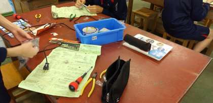 生徒たちはコンセントの中を見るのは初めてのようです。