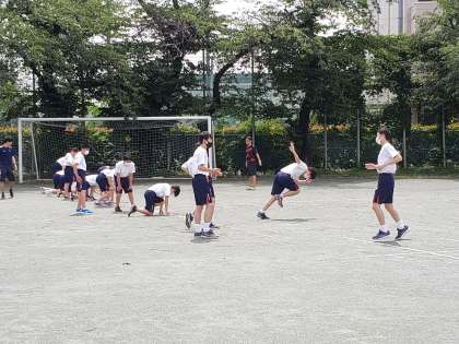 今日の校庭、至るところから生徒たちの歓声が聞こえてきます。今週までは体ならしの期間です。まずは楽しみながら、体力向上を目指します。