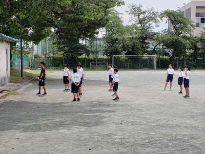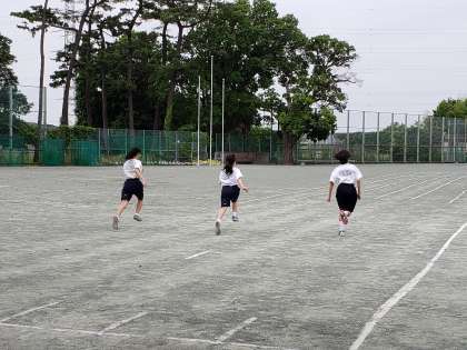 暑さが心配された今日ですが、今のところ曇りがちで、日陰も多いようです。1年生の体育実技も始まりました。水分補給をこまめにとりながら、まずは走法についての学習です。中学校ではクラウティングスタートを身につけます。正しい方法を学べば、走力もぐんと上がります。