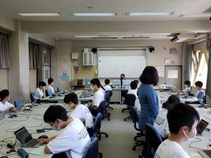 1年生総合、ロイロノートの使い方です。好きな食べ物を書いて、先生とのやり取り。「届いた!」嬉しそうな声です。