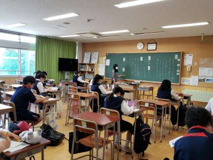 3年生国語、近代俳句の知識を学習中。短い言葉の中に込めた作者の思い、想像力を巡らせながら味わっています。