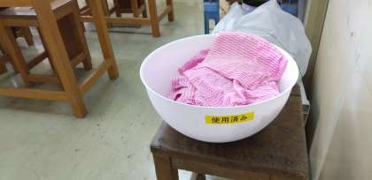授業が終わったら、各自がテーブルを拭いて退出します。