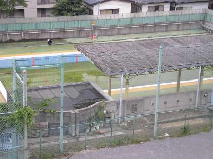 南側にあるプールには人影があります。