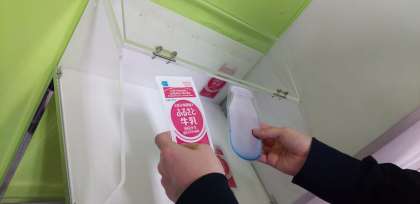 牛乳がビンから紙パックに変わるので、表示もすべて取り換えました。