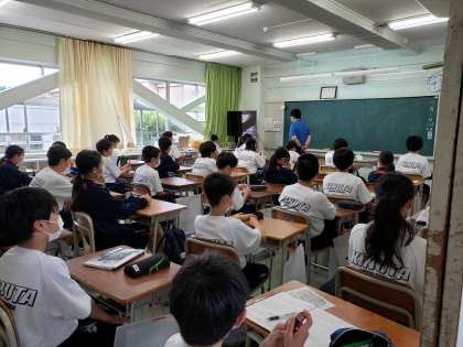 生徒会本部役員主催の生徒会朝礼が、今年度初めて開催されました。生徒会長から全校生徒にメッセージが贈られました。休業期間中、多くのものが失われました。新入生との出会いの場であった対面式、昨年度の生徒会から引き継いだ運動会明けの後夜祭などなど。それでも休業期間だからこそ充実できたこともたくさんあります。これからどうやって日常を取り戻していくか、生徒たちの力を結集して、砧中を盛り上げていきましょう、そう呼びかけてくれました。様々な機会を失った3年生だからこその力強いメッセージでした。
