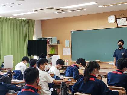 砧中ではその連絡を受けて、授業中は各生徒の判断で、また風が強い日などは教員の判断でパーテーションを設置しない対応も行ってまいります。なお、給食時間中はマスクを外すため、引き続き設置してまいります。