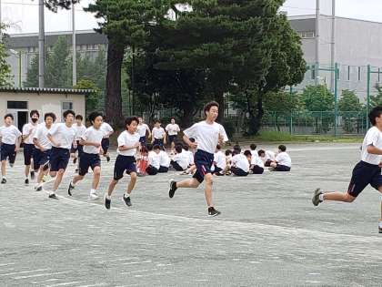 今もまだ走ることが中心の体育授業ですが、学校再開直後と比べると、着実に体力は回復してきたようです。走り方もしっかりとしてきました。