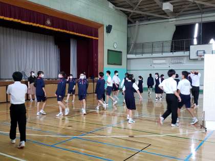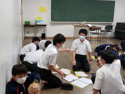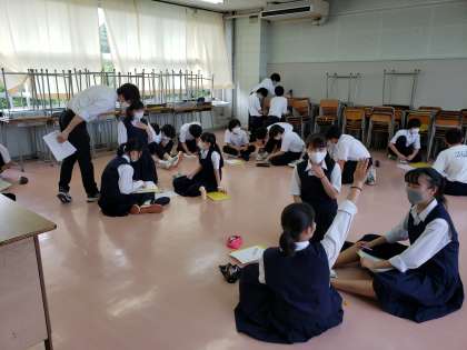 教室を離れ、体育館や特別教室を使って、換気にも気をつけながら取り組んでいました。