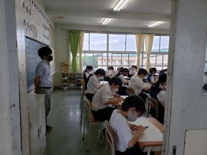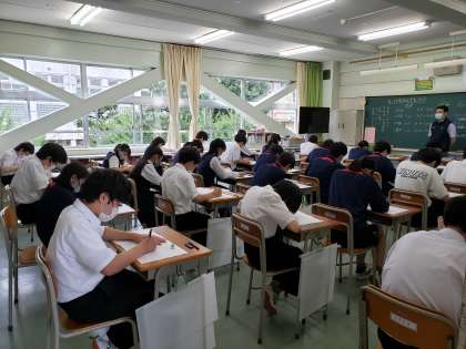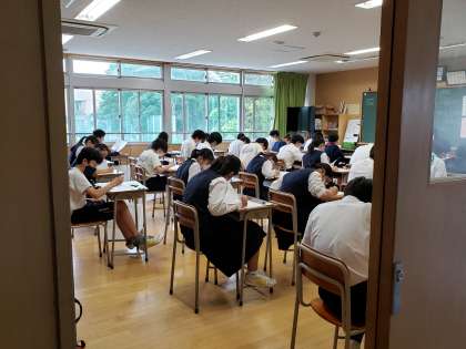 国語の試験が始まりました。各学年とも問題に集中しています。引き締まった緊張感の中、黙々と問題に向き合う生徒たち。問題文をしっかりと読んでくださいね。