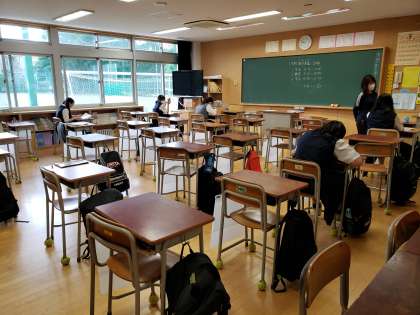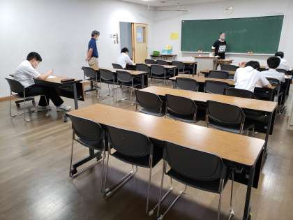 I組はこの時間、数学の試験が行われています。朝の学活時には「数学嫌だなぁ〜」と弱気発言のあった生徒も、気持ちを切り替えて数学の問題に向き合っていました。集中力、さすがですねぇ。