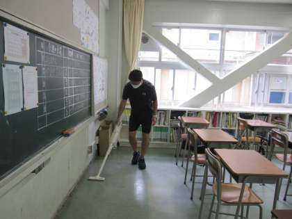 砧中学校では、清掃活動は教員や主事が行っています。副校長