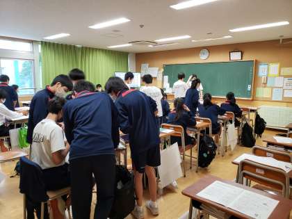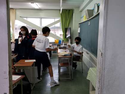 今日も各クラスではテストが戻されています。「ドキドキするぅ〜」と言いながら、答案用紙を受け取る生徒たち。その後は、お互い「どうだった?」と反応を確かめ合っています。気持ちはよくわかりますね。