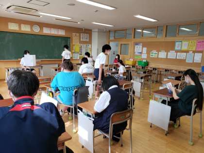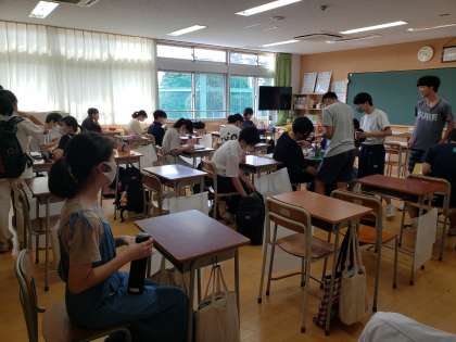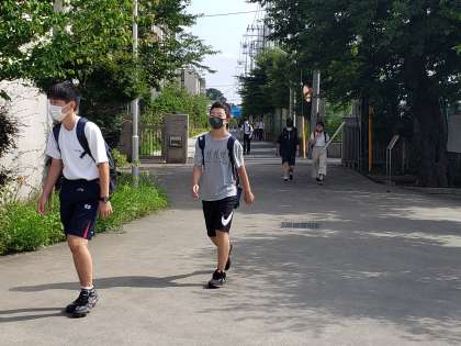 今日から2週間は、夏休み短縮に伴う授業日です。生徒の服装も私服あり、体育着あり、部活動着あり、標準服(制服)ありです。何人かの生徒に尋ねてみると、今日は暑くなりそうなので、熱中症対策として服装を選んだ生徒が多かったようです。梅雨明けはまだのようですが、この2週間は、一日一日夏らしくなってきそうですね。