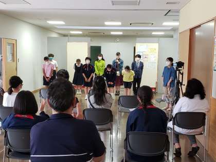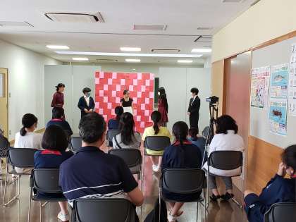 演劇部の恒例、新入生歓迎公演。今年度は3年生と2年生でそれぞれ脚本を書き、オリジナルで臨みました。長い休業期間で練習もままならない中、会場からも笑いが起こるなど、熱演でした。演劇界は今、コロナ禍で厳しい状況にありますが、砧中では会場も工夫しながら、披露することができました。高校生の先輩も駆けつけてくれ、部員のみなさんも達成感があったと思います。