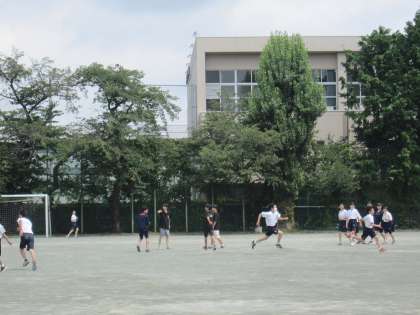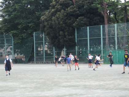 校庭のあちこちで鬼ごっこをしています。鬼ごっこは運動能力向上にもとても良いそうです。