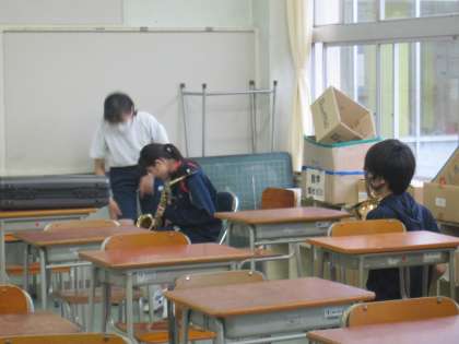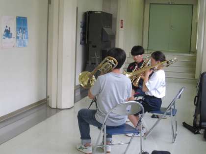 吹奏楽部の1年生は自分の担当楽器が決まるまでは、いろんな楽器を体験します。