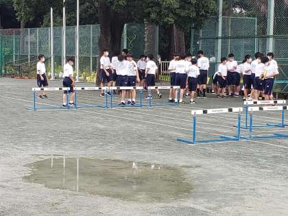校庭には所々に水溜まりも。
